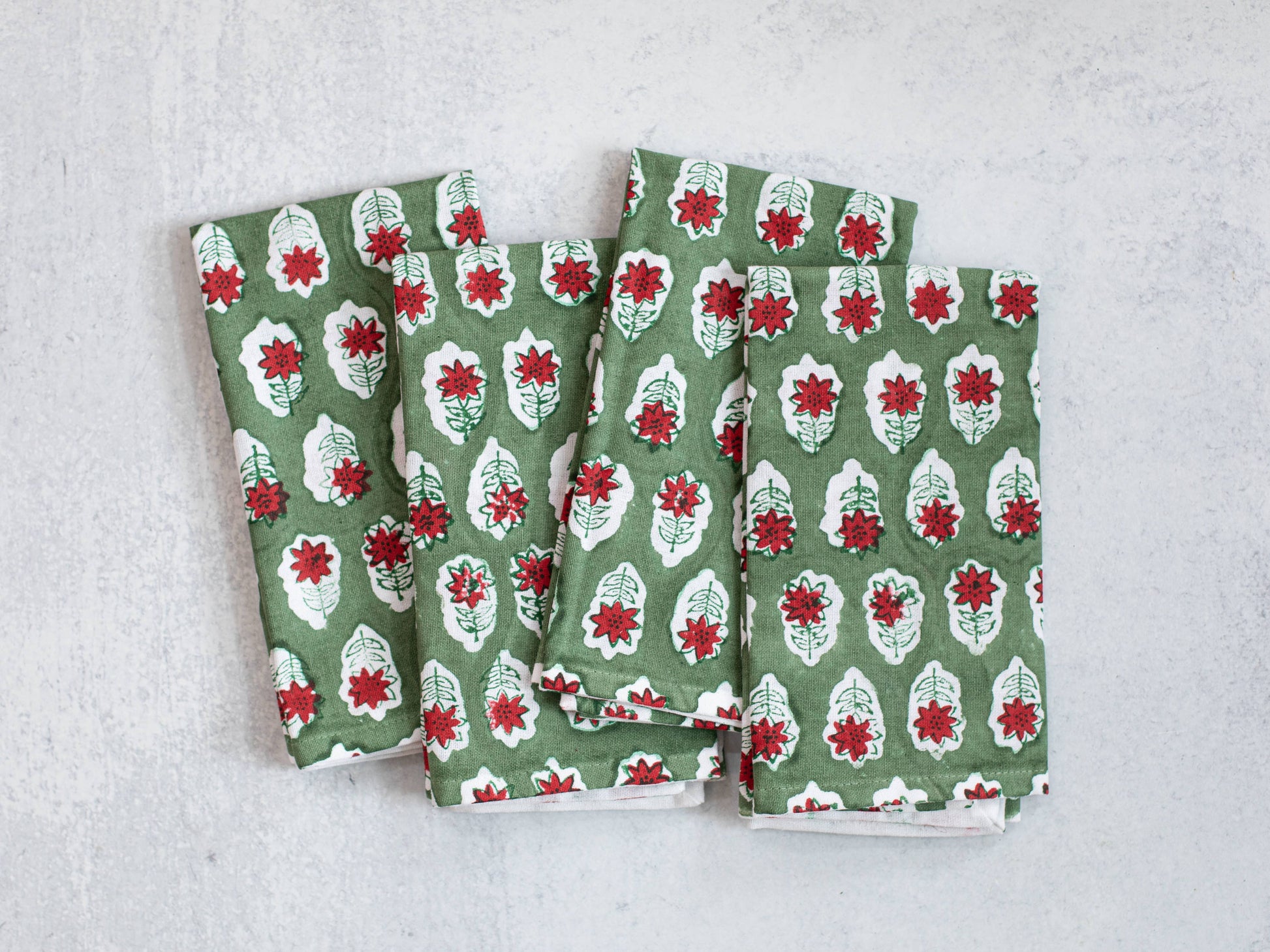 Dinner Napkins (set of 4) - Poinsettia, Sage & Red