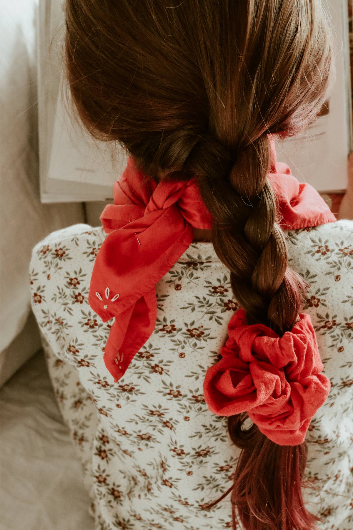 Hand embroidered RODEO cotton bandana, hand dyed : Sand/red thread