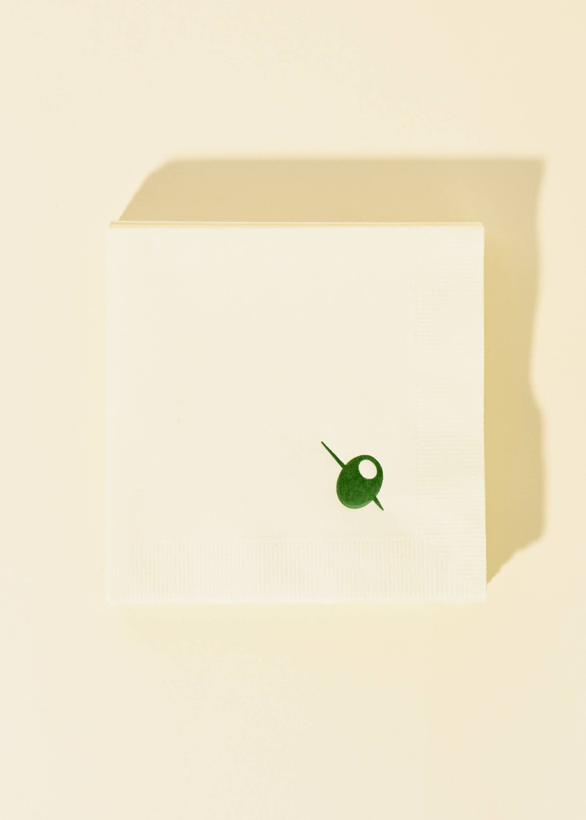 The perfect gift for your dirty martini loving friend, these illustrated cocktail napkins are a chic and simple way to upgrade a bar cart!