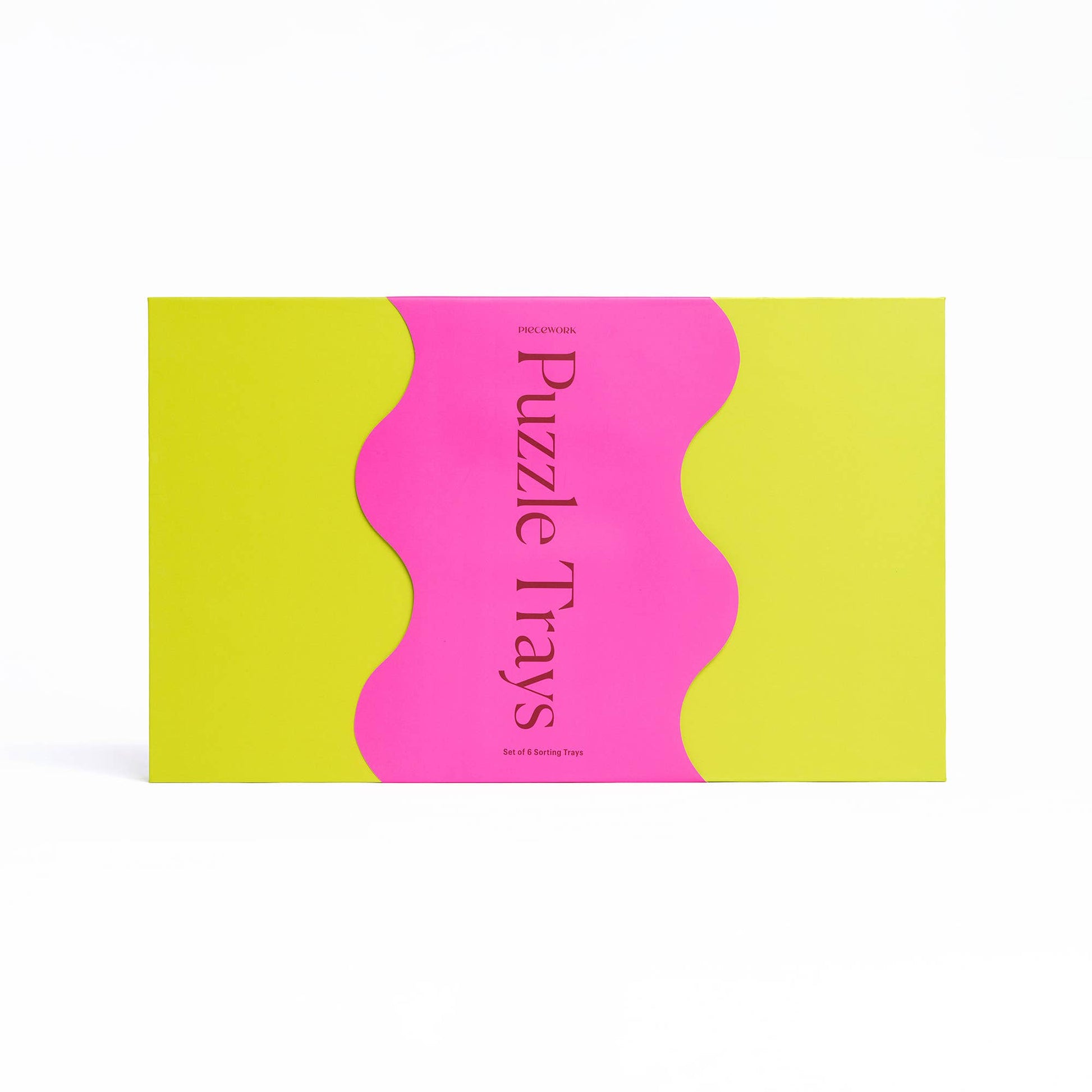 Pass the pieces! Our set of six colorful nesting puzzle trays offer the perfect setup for working on a puzzle. After spending thousands of hours thinking about and working on puzzles, we decided to make our ideal jigsaw accessory. Have bold, monotone colors so the jigsaw pieces truly pop For folks who find categorizing, sorting, grouping, arranging, and organizing not just soothing, but downright cathartic, trust us when we say you will never look back. The days of unruly puzzle-ing are behind you!