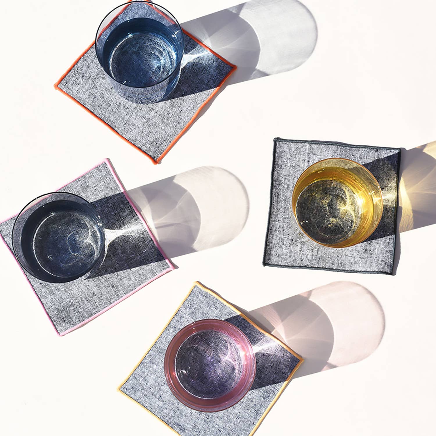 Signature Collection An elevated foundation or wrap for your beverage of choice, our rainbow chambray cocktail napkins add both textural richness and a pop of color to any libation. 4-piece cloth cocktail napkin set