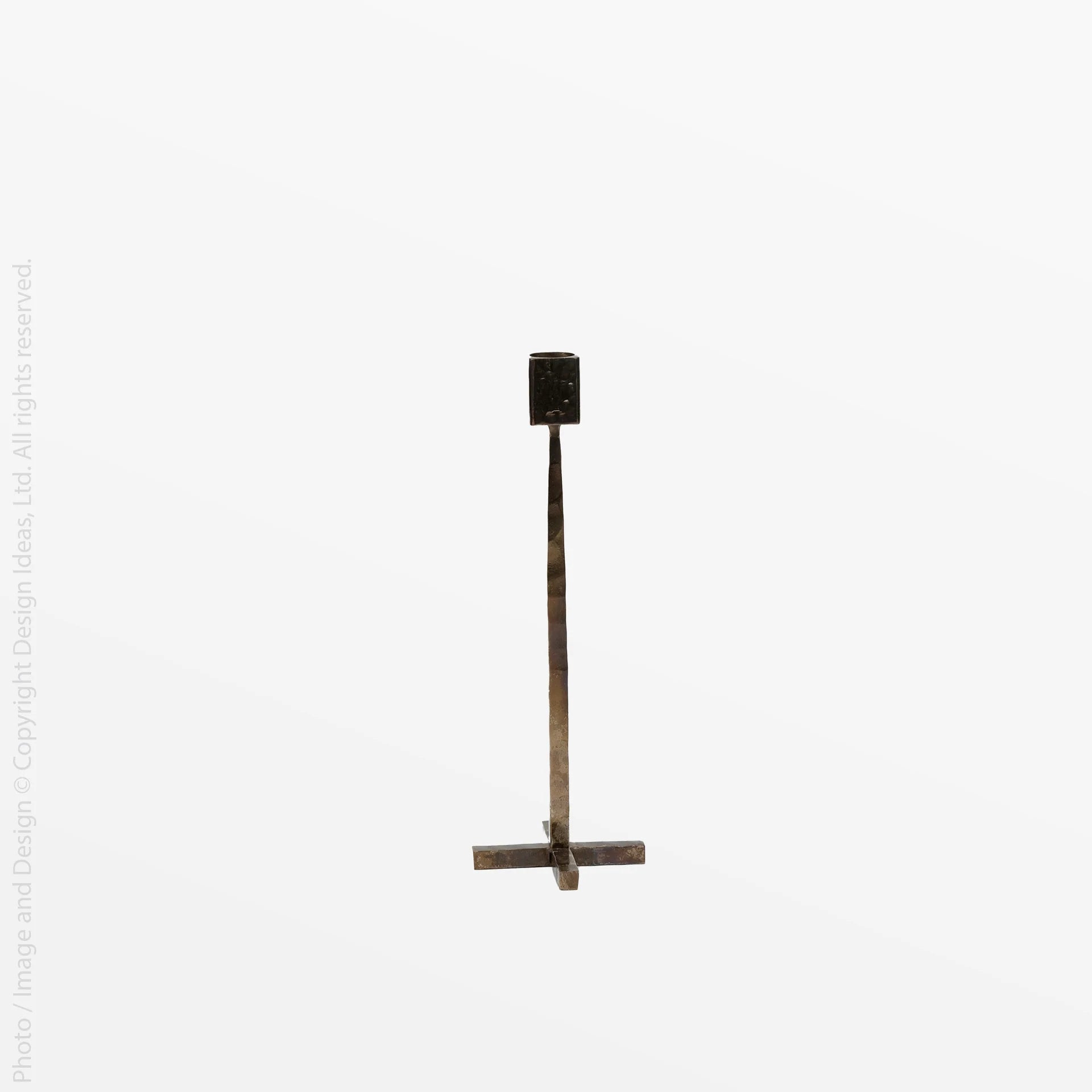 The Rayburn™ collection will stop you in your tracks! Made from a sophisticated technique of hand-hammering steel that ultimately showcases the natural golden tones of the metal. These pieces reflect a multitude of colors from copper, gold, and brown, and in the right lighting, even a hint of iridescent shimmer. These have to be seen in person to truly appreciate. Use as a decor piece throughout your home as a standalone item or show it off with a taper candle and let the warmth of the candlelight reflect all the elegant tones of this one of a kind creation.