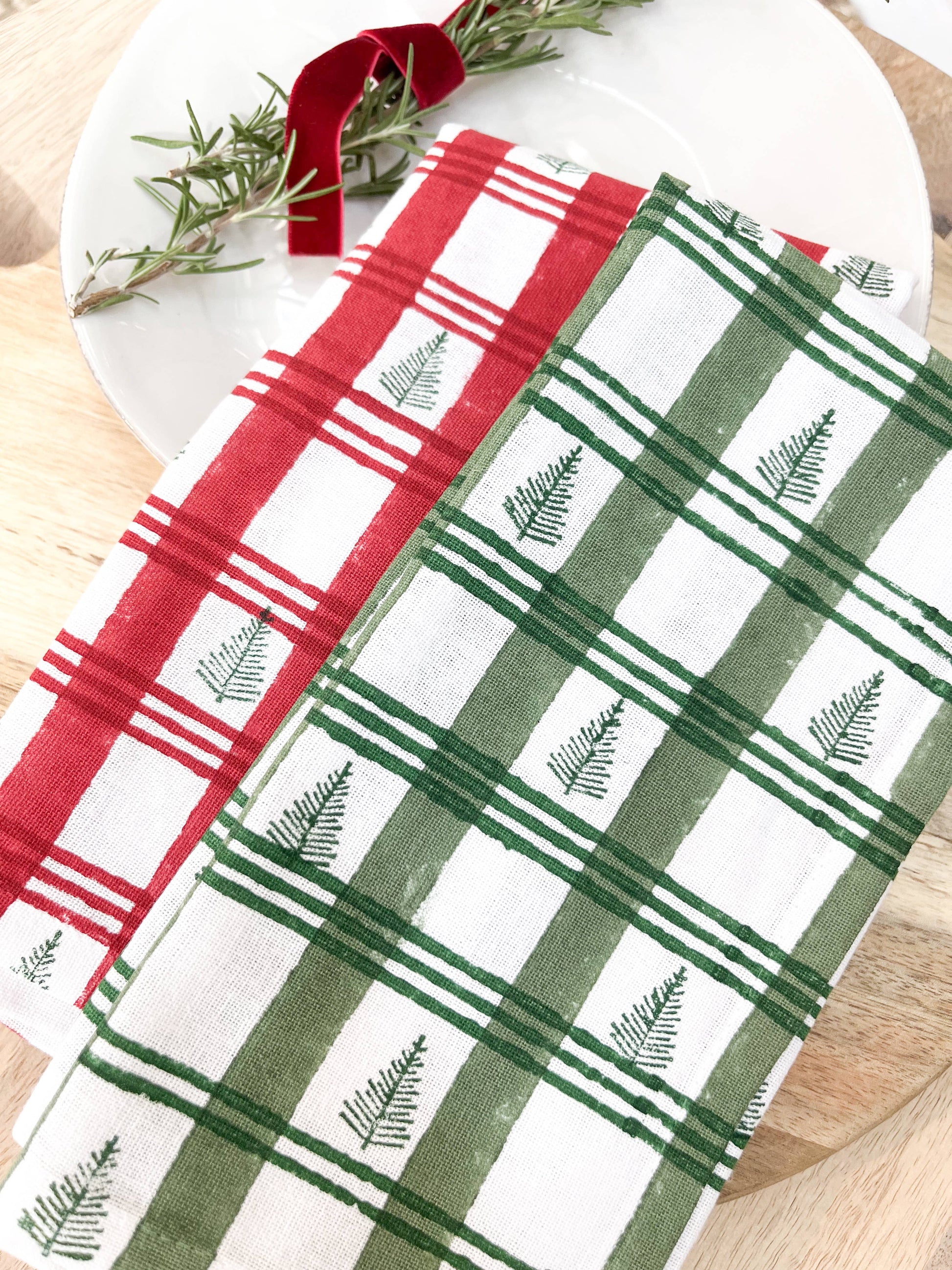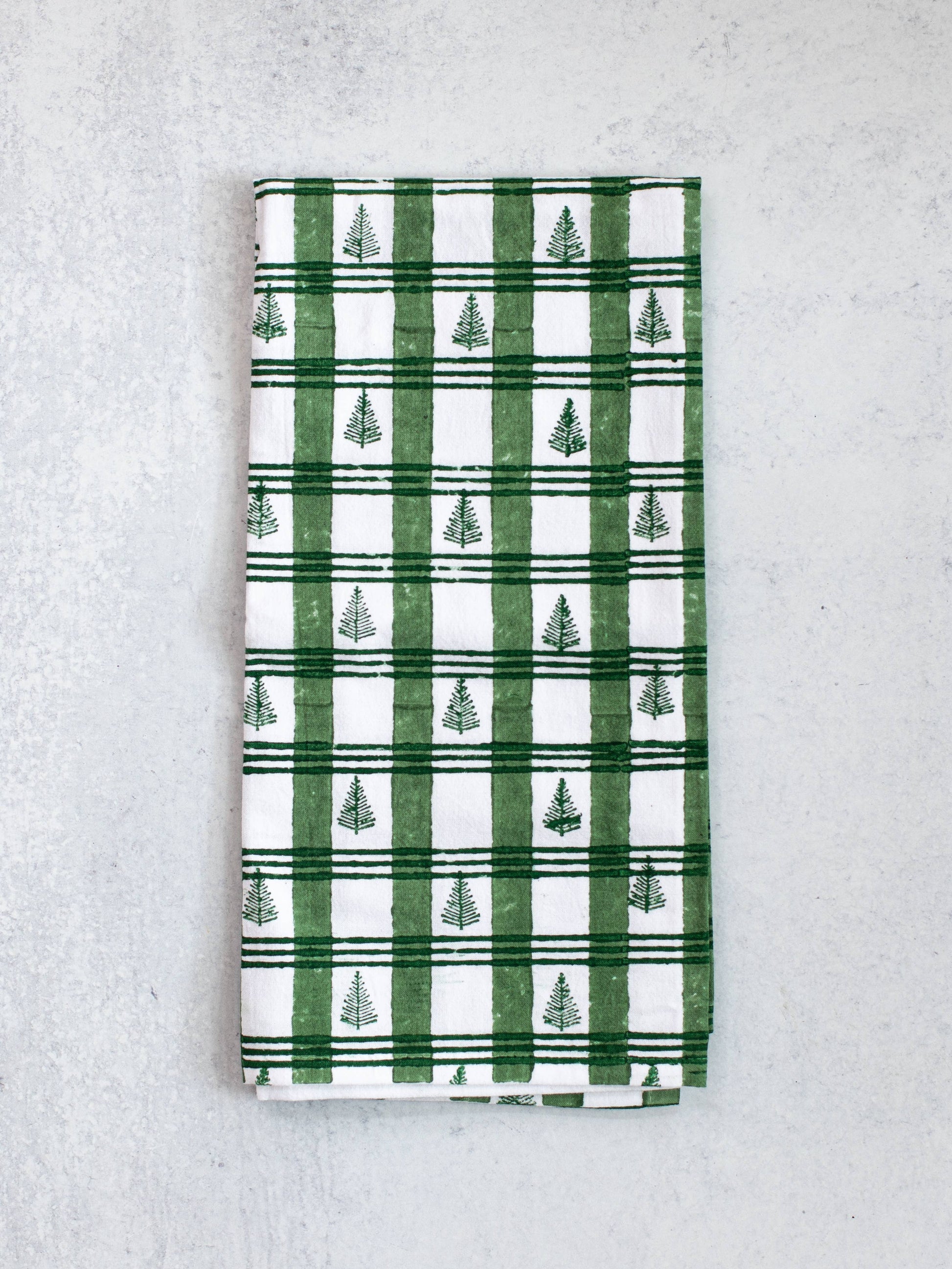 Tea Towel - Plaid Trees, Evergreen & Sage