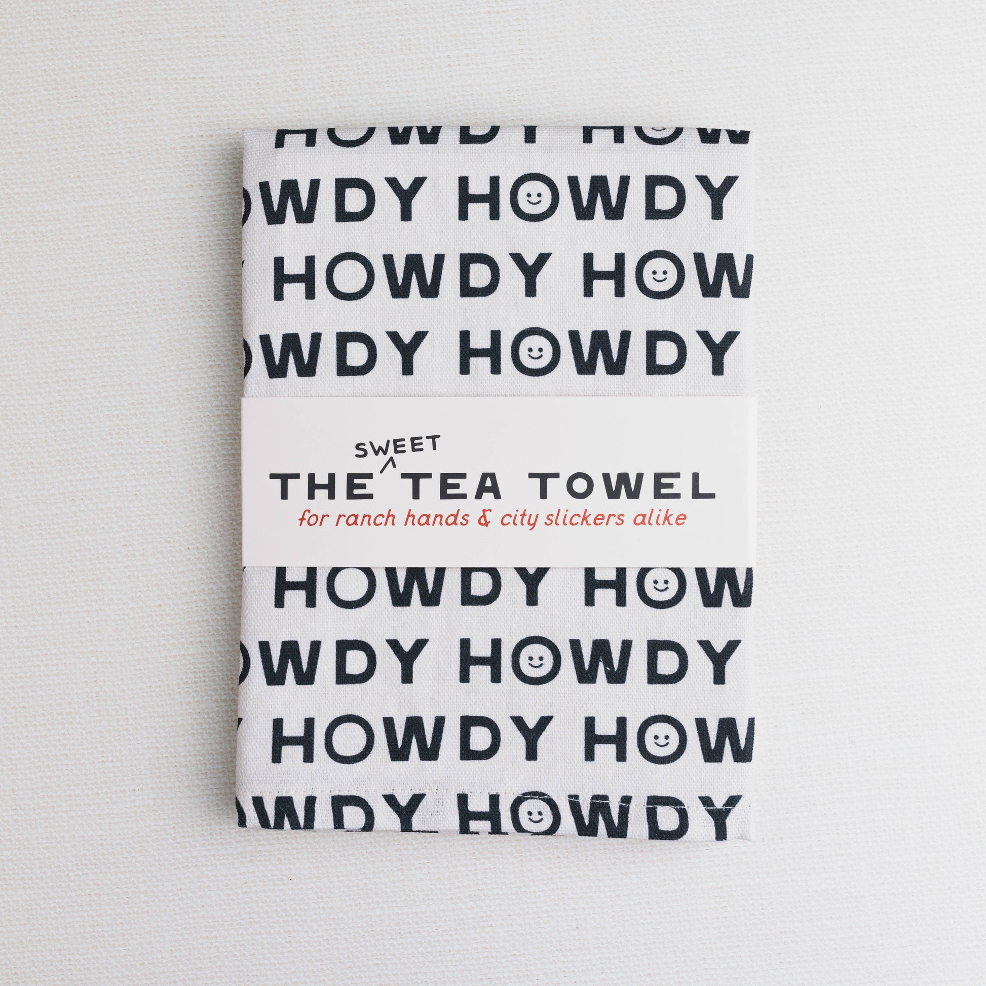The most adorable tea towel in the west. Size: 25" x 17" Material: 100% Cotton Packaging: Belly-Band Includes Sewn-On Hang Loop Designed in Texas. Ethically-Manufactured in India.